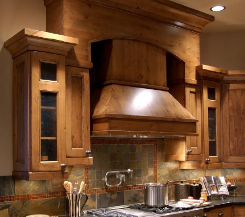 While most kitchen styles incorporate all sorts of decorative accessories—wainscotting, corbels and crown molding to name a few—rustic style kitchens should stick to decorative accessories that have a more furniture detailing design than a typical decorative accessory. What this really means is that you should stay away from any accessories that include the term “Roman” or might appear to have Roman or Greek inspired designs, like corbels or pillars.