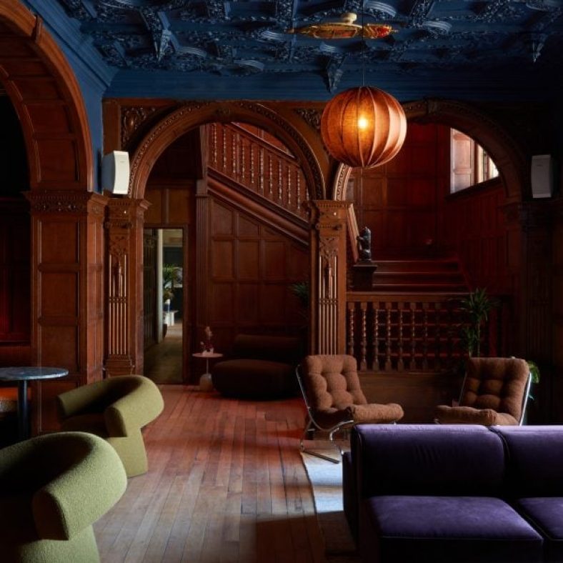For drinks, guests can head to the hotel’s peachy-hued Meadow Bar or to the Snug, which has a slightly more grown-up aesthetic thanks to the dark, wood-panelled walls that are original to the building.