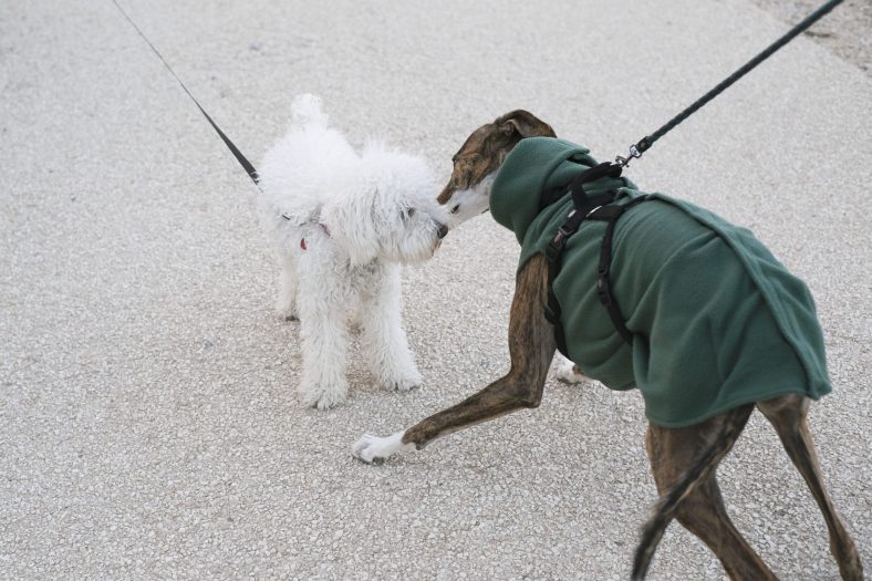 If you’re dealing with an aggressive dog hold off on intros until you can get an experienced reward-based trainer on board. Also, some dogs are super excitable and jump on every dog they meet; Unfortunately, this can be troublesome, too, if the other dog is calmer or doesn’t appreciate the rudeness. Again, seek professional help for over-reactivity before attempting intros.