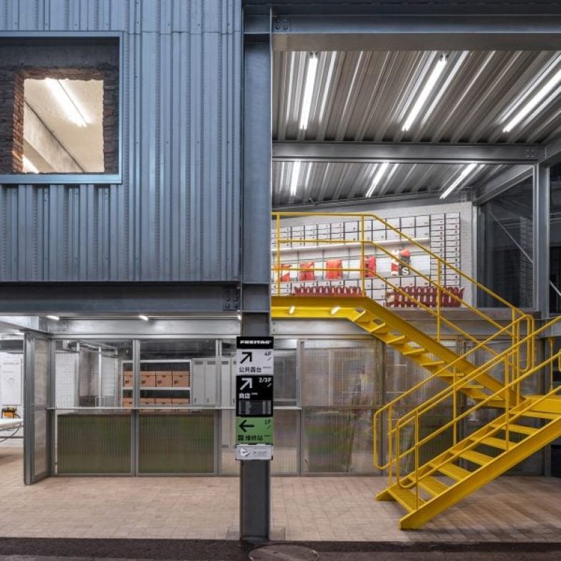“Even the storage space is positioned in front of the visitors across all three floors. These spatial characters are highly relevant to the factory spirit of Freitag, and the space is a natural reflection of that.”