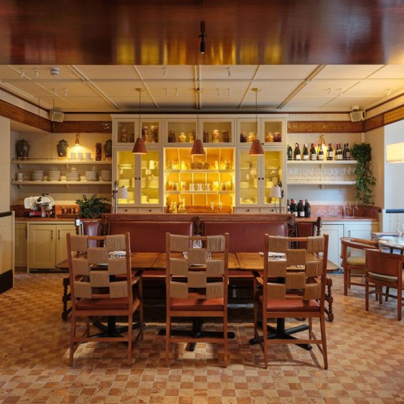 Pirajean Lees aimed to build a story around the space and its sequence of many small rooms, while tapping into the restaurant’s British produce-led culinary approach.