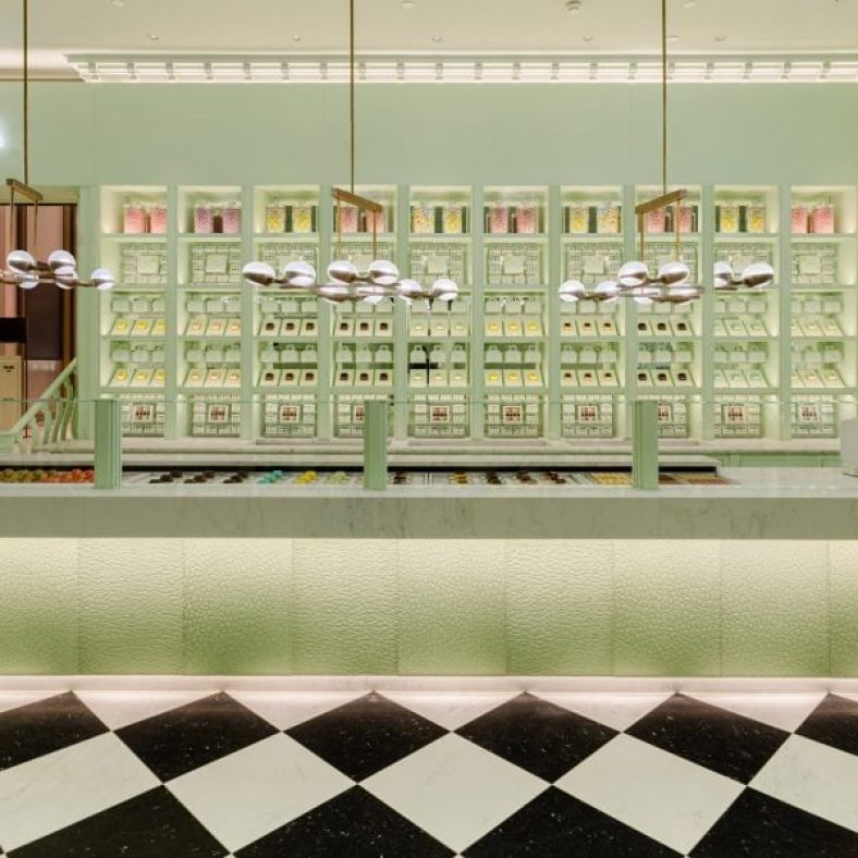 Fashion house Prada has opened the Prada Caffè in luxury department store Harrods, which has an interior that is blanketed in the brand’s signature green hue and mirrors one of Milan‘s oldest patisseries.