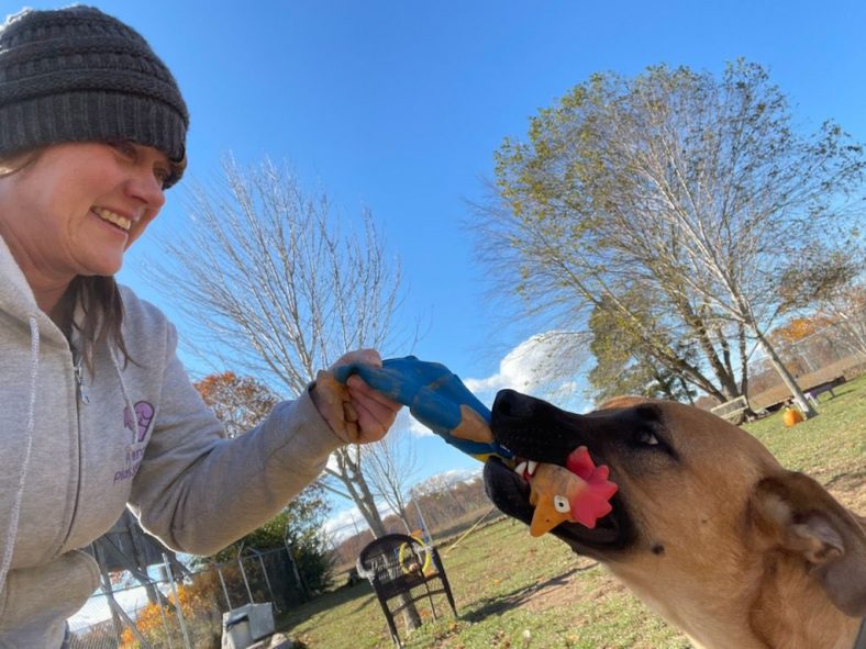 • Get your dog engaged in a game of tug with a toy starting with a lower-value toy first. This might take a little time, so be patient!